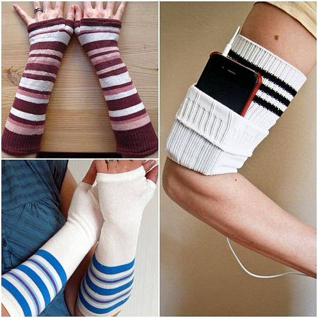 Seperti yang dituturkan oleh mbak Anita Ningtyas dalam blognya emakpintar.asia, kaus kaki usang bisa dimanfaatin untuk banyak hal loh. Seperti pelindung siku bayi yang sedang belajar berjalan, sarung tangan dan juga seperti gambar di atas. Ternyata kaus kaki bekas bisa digunakan sebagai pocket handband saat Anda berolah raga pagi dan tak ingin jauh dari smartphone Anda.