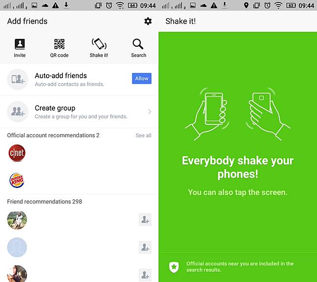 Ketimbang susah-susah minta ID LINE teman, ada baiknya saat berkenalan cukup goyangkan smartphonemu lewat fitur Shake It. Fitur ini memudahkanmu langsung berteman dengan rekan yang ada dihadapanmu tanpa perlu add ID LINE. Melainkan dengan hanya menguncang smartphone dan otomatis kamu dapat teman baru deh!