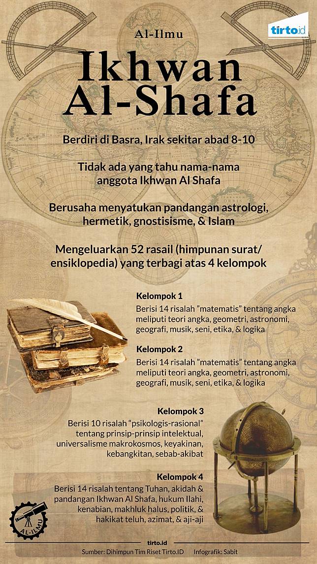 thayyibah.com :: Ikhwan al-Shafa adalah sebuah kumpulan persaudaraan rahasia para peneliti muslim. Organisasi ini dipercaya berada di daerah Basra, Irak. Namun, muncul pula spekulasi kalau kelompok rahasia ini berdiri di Bosra, Suriah. Sampai saat ini, belum diketahui pasti kapan organisasi rahasia ini berdiri dan mengapa menggunakan nama Ikhwan al-Shafa.