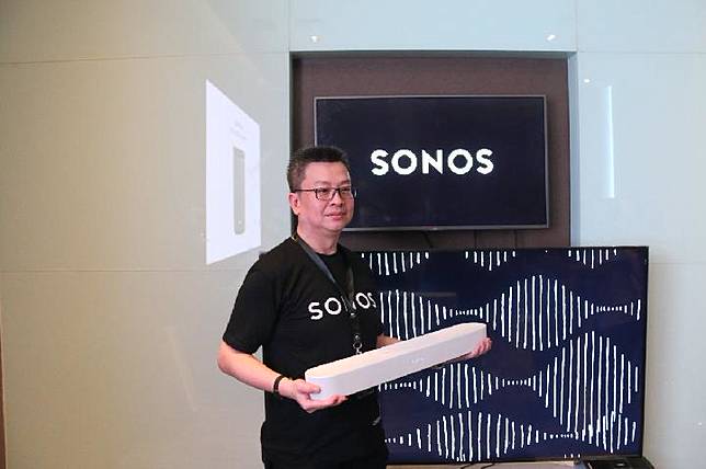 Rudi Hidayat, CEO PT. V2 Indonesia, mengenalkan smart speaker Sonos Beam dengan kemampuan yang bisa digunakan baik untuk TV maupun untuk aktifitas mendengarkan musik. (V2 Indonesia)