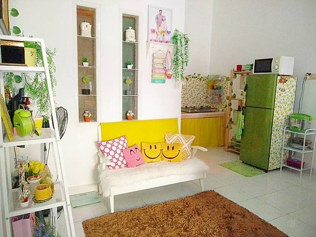4. Selain warna putih, kamu bisa mengadopsi warna kuning dan hijau yang efektif membuat hunian terasa kian segar.