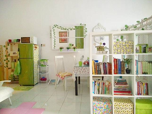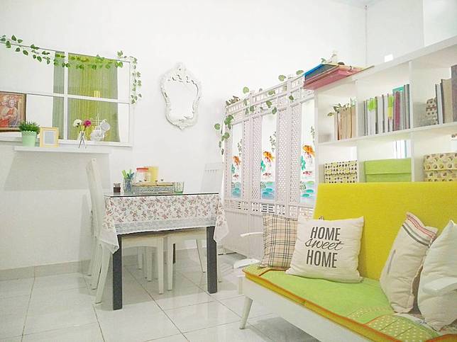 3. Hindari penggunaan sekat permanen di rumah mungil supaya hunian tak terasa makin sempit. Kamu bisa menggunakan rak buku atau white folding partition.