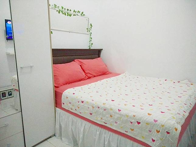 11. Gak perlu TV kabinet yang bisa menyita tempat, lebih baik kamu menempelkannya di dinding saja.