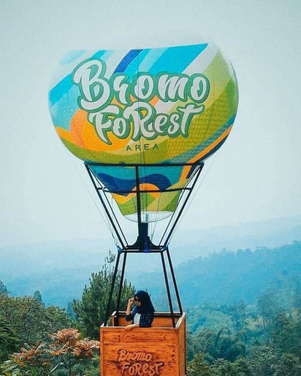 Bromo Forest Area berada di area hutan Desa Baledono, Kecamatan Tosari, Kabupaten Pasuruan. Tempat ini menyajikan wisata dengan nuansa alam yang masih asri dan begitu menyegarkan. Kamu bisa berfoto-foto kece di beragam wahana yang unik, seperti ayunan, pins swing, air ballon, air bike, dan sebagainya.