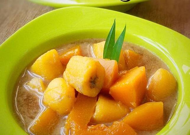 • Tambahkan santan, masak sampai pisang dan labu matang. Aduk sesekali supaya santan tidak pecah.