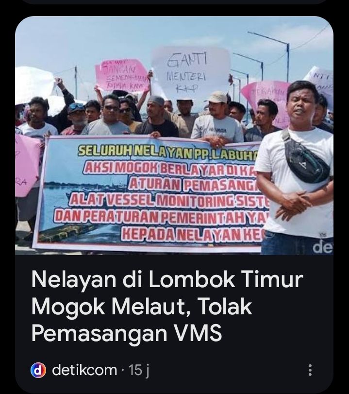 Kalau membuat aturan berbau duit, para pejabat pemerintah di Konoha memang pinter dan kreatif. Kali ini, muncul aturan baru yang mewajibkan para nelayan pemilik perahu untuk memasang VMS (vessel monitoring system). Aturan ini ditolak di NTB, yang berbuntut pemogokan massal para nelayan di Kabupaten Lombok Timur.