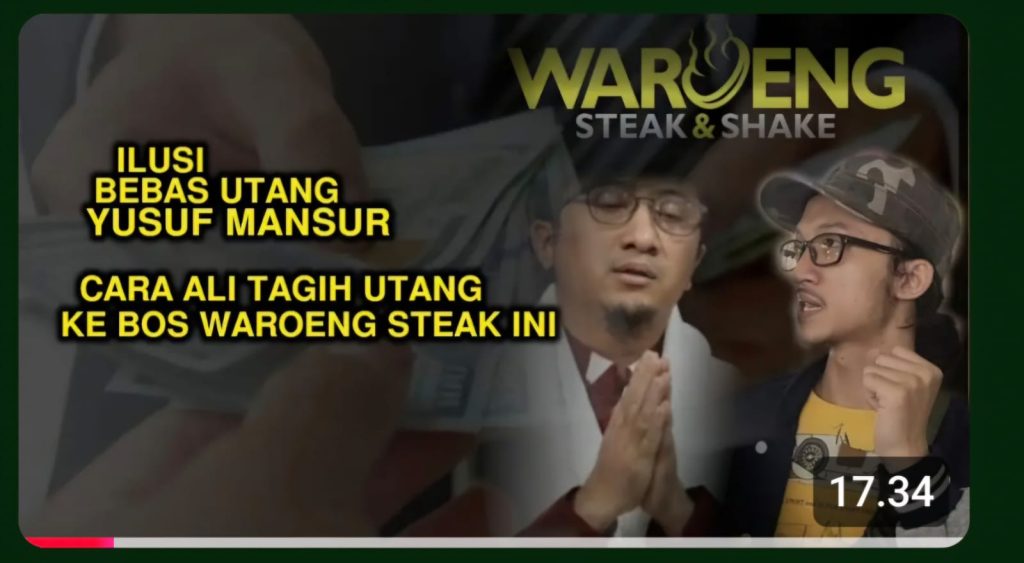 Yusuf Mansur suka menjual ilusi keajaiban bebas hutang. Nyatanya dia sendiri punya banyak utang terhadap banyak orang. Ali, mantan karyawan Paytren punya pengalaman menagih utang kepada Yusuf Mansur si bos Waroeng Steak and Shake.
