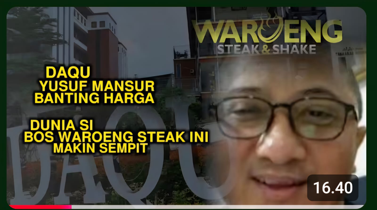 Daqu Yusuf Mansur Banting Harga Dunia Si Bos Waroeng Steak ini Makin SempitDunia interaksi sosial Yusuf Mansur makin sempit. Begitu juga dengan lembaga pendidikan miliknya, Darul Qur’an (Daqu) sudah banting harga. Darul Mansur darul quran Interaksi Sosial Pondok Yusuf Mansur Waroeng Group Waroeng Steak and Shake 2025-06-16 Darso Arief Share Facebook Twitter