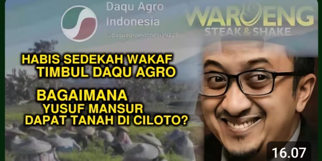 Setelah program Sedekah Wakaf lahan di Kadudampit, Sukabumi yang berujung sertifikat pribadi atas nama Yusuf Mansur dan bukan wakaf, Yusuf Mansur meluncurkan program Daqu Agrotechno dengan beberapa lahan. Salah satunya lahan di Ciloto, Cipanas, Cianjur. Bagaimana asal usul lahan itu? Endang menjawabnya.