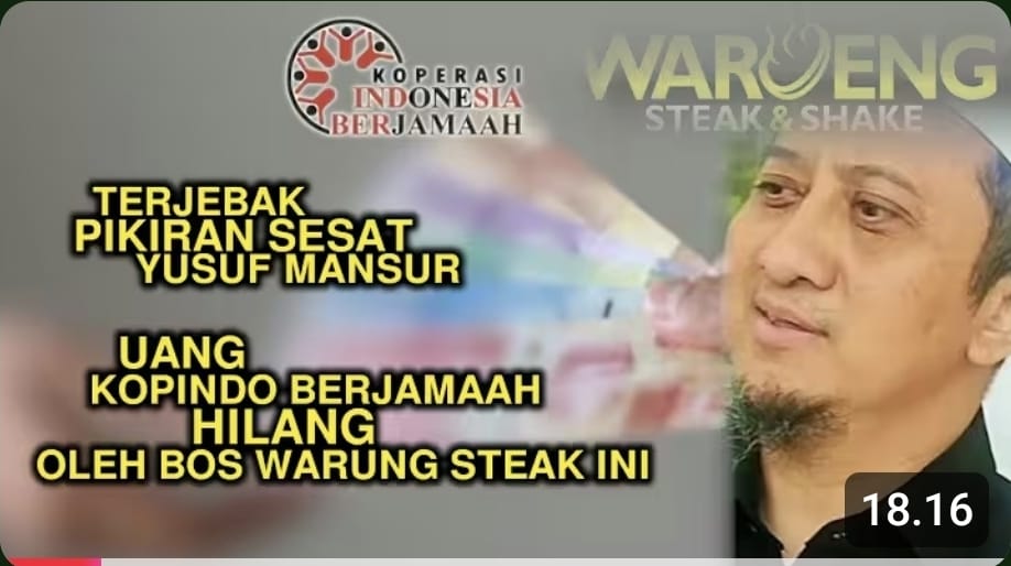 Masih ada ribuan investor Patungan Usaha dan Patungan Asset atau anggota Koperasi Indonesia (Kopindo) Berjamaah yang belum dikembalikan uang investasinya. Semua ini berawal dari ketertarikan pada pikiran sesat dan aliran sesat yang dikembangkan oleh Yusuf Mansur.