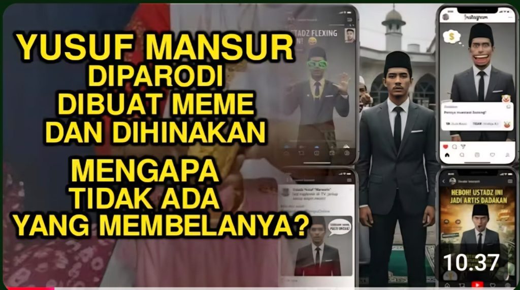 Di dunia maya, Yusuf Mansur diparodikan, dibuat meme untun bahan hiburan. Dia juga dihinanakan. Tapi apa sebab tak ada individu, ormas Islam dan para santri membelanya..?