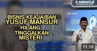 Hilang Tinggalkan MisteriYusuf Mansur yang biasa memunculkan bisnis baru saat bisnis lama sekarat, hari ini dia tak berani lagi memunculkan bisnis baru lagi. Dia sepertinya tak punya amunisi lagi untuk berbisnis dusta. Yusuf Mansur bisa membohongi sebagian orang untuk suatu masa tapi dia tak bisa menipu semua orang untuk waktu yang lama.