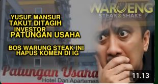 Padahal Waroeng Steak Ada di Mana-ManaMuncul lagi korban investasi Yusuf Mansur, yakni investasi Patungan Usaha Hotel Siti. Kali ini suami istri dari Samarinda, Kaltim. Yusuf Mansur menurut Ibu Ellya Noor, Yusuf Mansur adalah seorang pembohongan. Padahal di Waroeng Steak and Shake milik Yusuf Mansur banyak dengan nilai masing-masing di atas 10M.